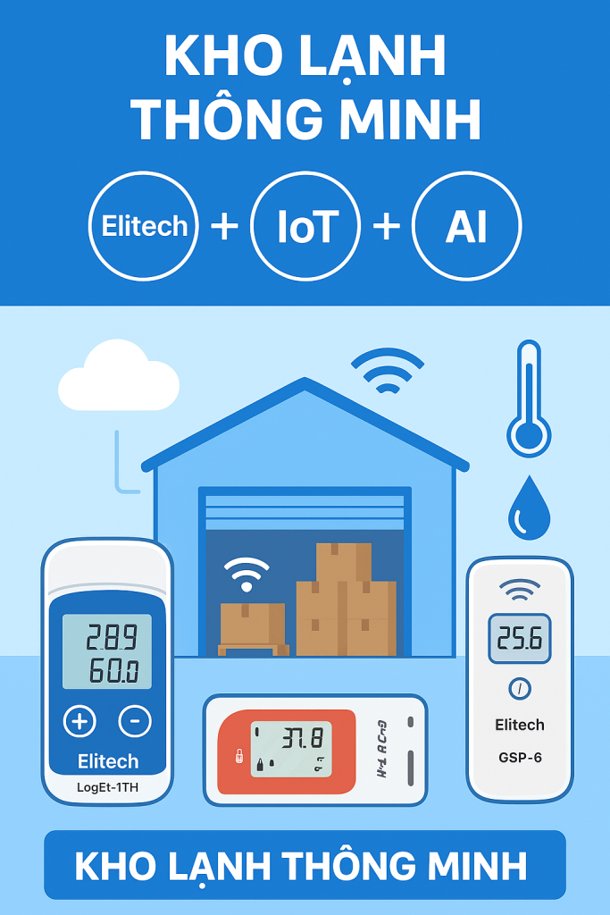 - Thiết bị đo Elitech: Cung cấp dữ liệu chính xác, lưu trữ lâu dài và cảnh báo khi vượt ngưỡng.
